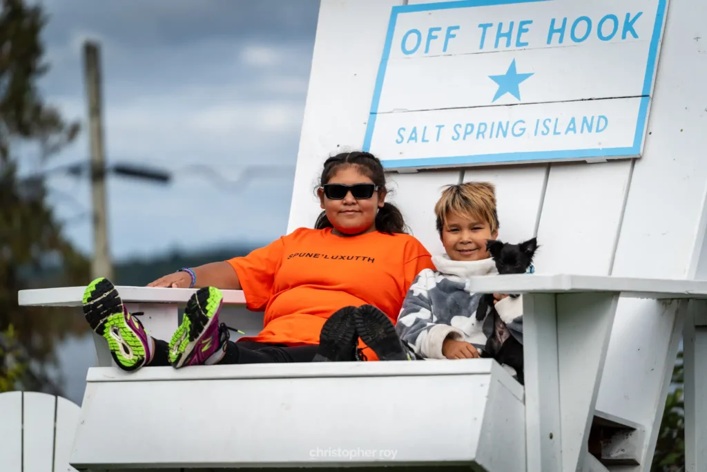 On Salt Spring Island, the gathering for National Day for Truth and Reconciliation was organized by Penelakut Tribe Councillor Kurt Irwin and hosted by Penelakut elders and the Coastal Blood Singers. The gathering included a community BBQ fundraiser, supported by local restaurant Feast and generously sponsored by Transition Salt Spring, Thrifty Foods, the Capital Regional District, Mouat’s Trading Company, the Salt Spring Island Foundation, and the Salt Spring Island Public Library.
