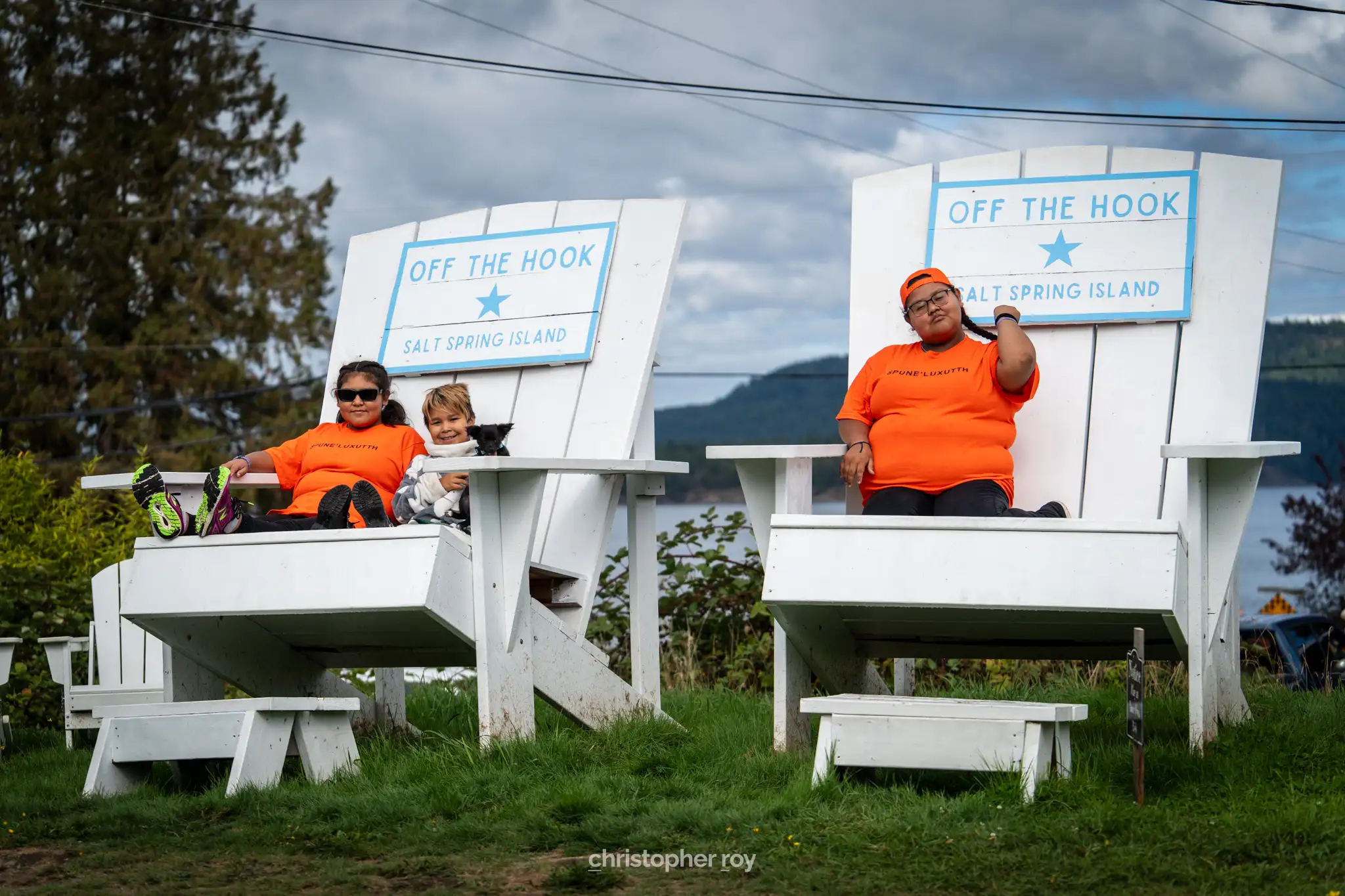 On Salt Spring Island, the gathering for National Day for Truth and Reconciliation was organized by Penelakut Tribe Councillor Kurt Irwin and hosted by Penelakut elders and the Coastal Blood Singers. The gathering included a community BBQ fundraiser, supported by local restaurant Feast and generously sponsored by Transition Salt Spring, Thrifty Foods, the Capital Regional District, Mouat’s Trading Company, the Salt Spring Island Foundation, and the Salt Spring Island Public Library.